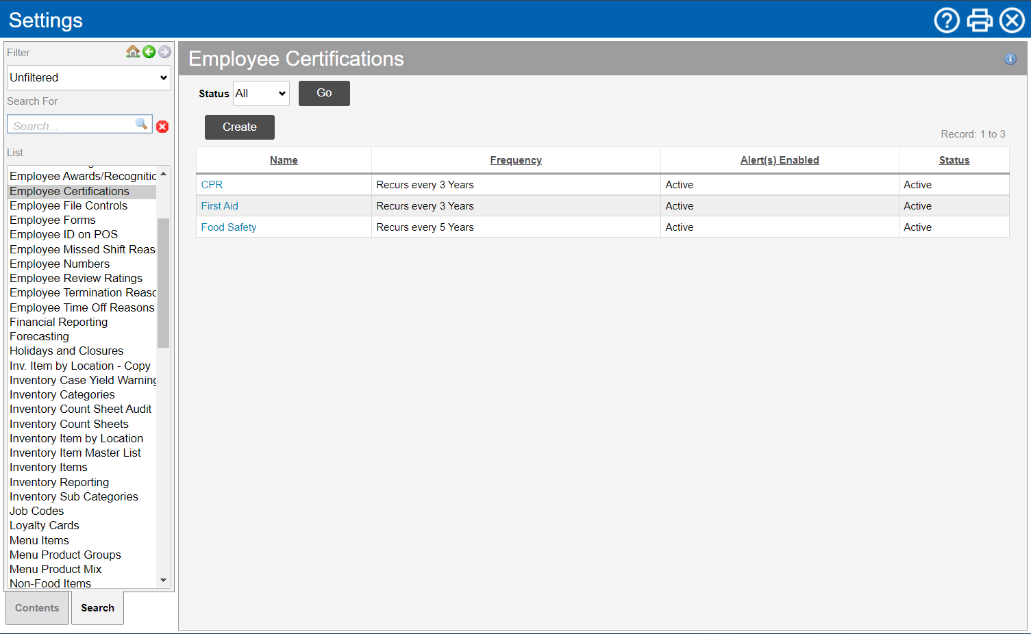 Employee Certifications lets you manage the certifications and trainings that employees need to take in your organization. CLEARVIEW can let you know when these are set to expire on the System Alerts page and the Employee Event Calendar page.
